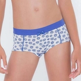 These white boxers with a blue fantasy pattern are super hip! The comfortable elastic band is blue with a bow.