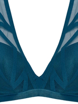 Made of sheer mesh fabric with a unique graphic pattern, this push up bra features comfortable pads that gently push your breasts together for sexy cleavage. The bra has a bralette look with a fully functional bra base underneath that provides adequate support. This design creates a stylish and fashionable look; perfect for wearing as a top. The beautiful design at the back adds an extra touch of elegance and style. With its comfortable fit and bralette-look design, this push up bra in petrol color is a must have in your wardrobe. Whether you wear it as lingerie or as a crop top, you are sure to make a bold fashion statement with this bra. All while feeling confident and comfortable!