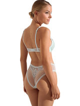 Lightness, tenderness, romance and seduction are all found in this lingerie series. Sophisticated, lightweight lace with a silky sheen, combined with delicate micro-mesh and a soft, breathable knit. The most romantic details are the decorative elastic cuffs and pearl decoration.